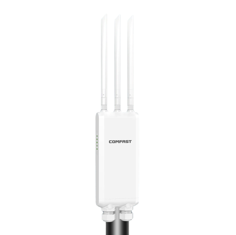 Utomhus WiFi accesspunkt är avsedd för att bygga ett trådlöst nätverk i öppna utrymmen där vanliga hemmaroutrar inte kan ge tillräcklig täckning. Enheten är designad för installation utomhus och kan användas exempelvis på torg, sportarenor, i parker eller andra större utomhusområden.