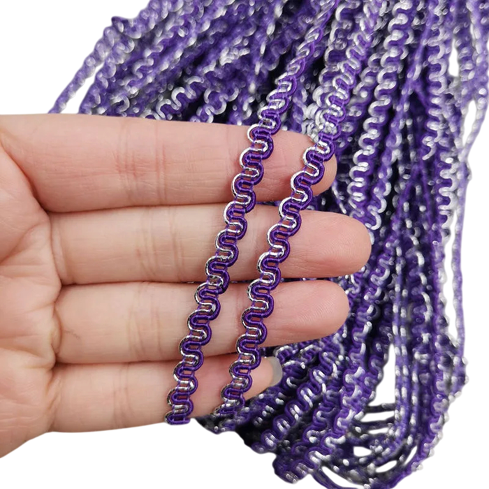 Smalt vågigt band av typen Ric Rac lämpligt för sömnad, dekoration av kläder, scrapbooking, bröllopsdekorationer och kreativa DIY-projekt. Fullständig beskrivning