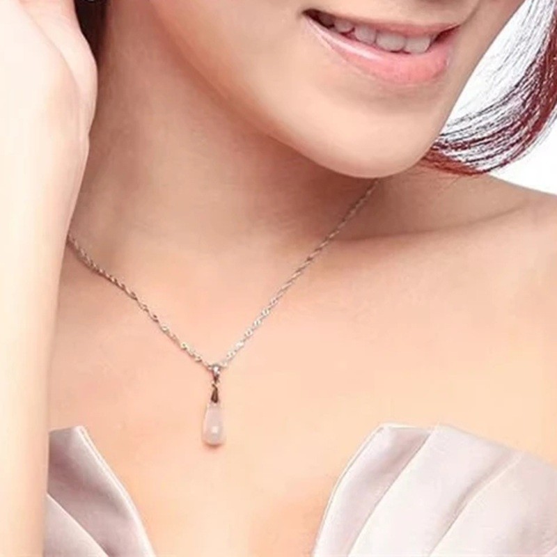 Värdig set med halsband 45 cm och örhängen Silver 925 Vattendroppe Bröllop Förlovning Fest smycken för kvinnor