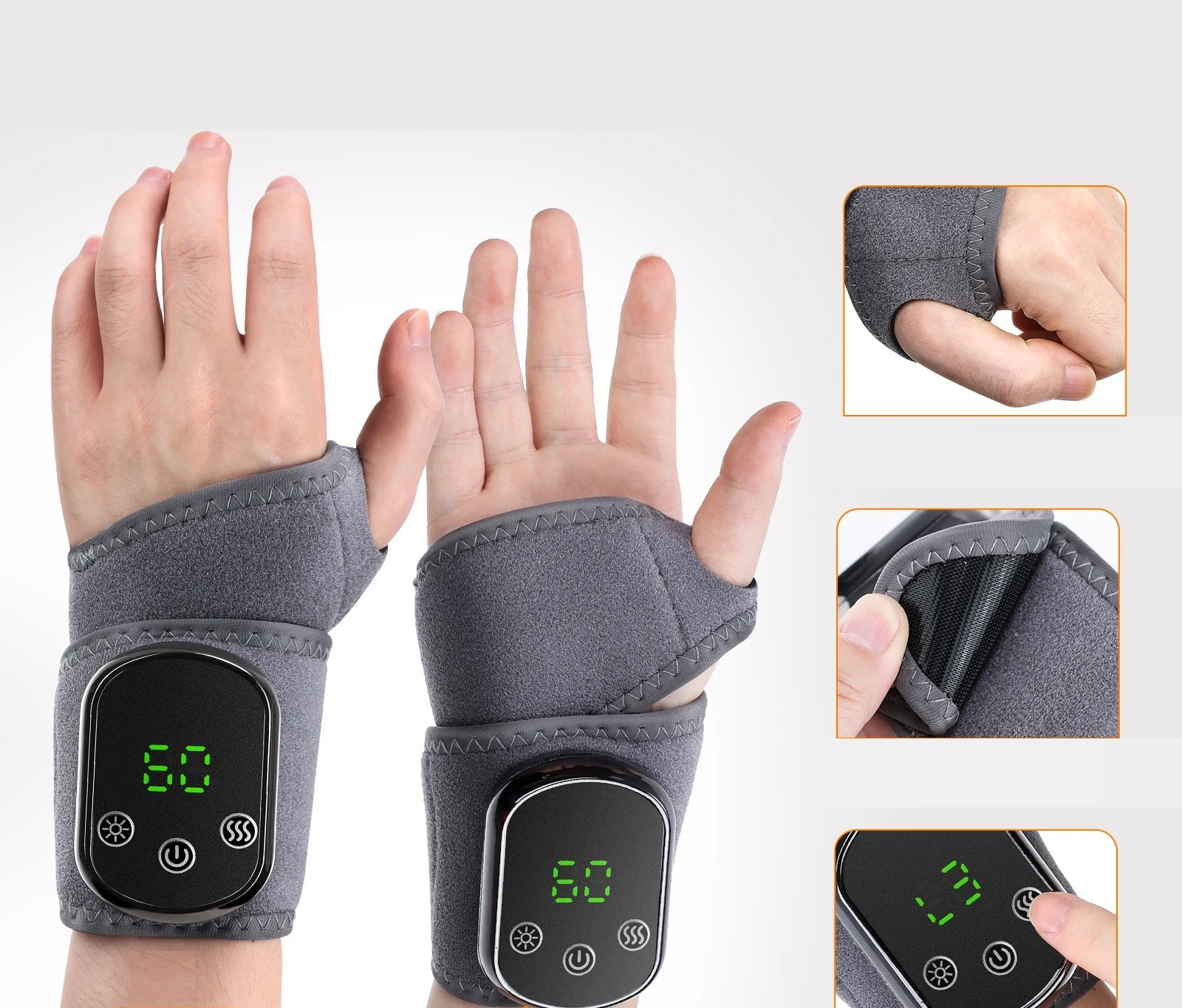 - Innehåll i förpackningen: 1x värmeortos för handleden, 1x laddningskabel USB-C, 1x användarmanual.