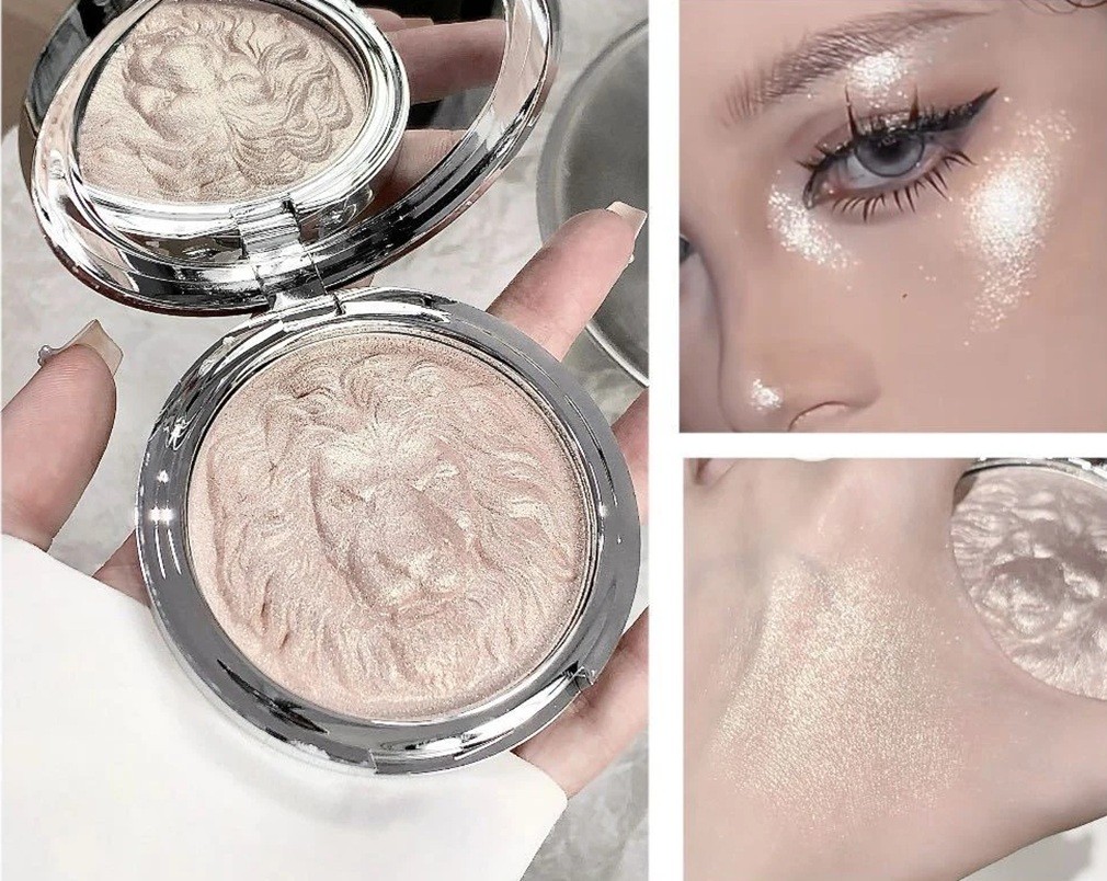 Startsida Startsida Hälsa och skönhet Ansikte Contour, bronzers och highlighters Vattenfast highlighter i palett med lejonmotiv Puderhighlighter för ansiktet Fin glittrande lyster långvarig effekt