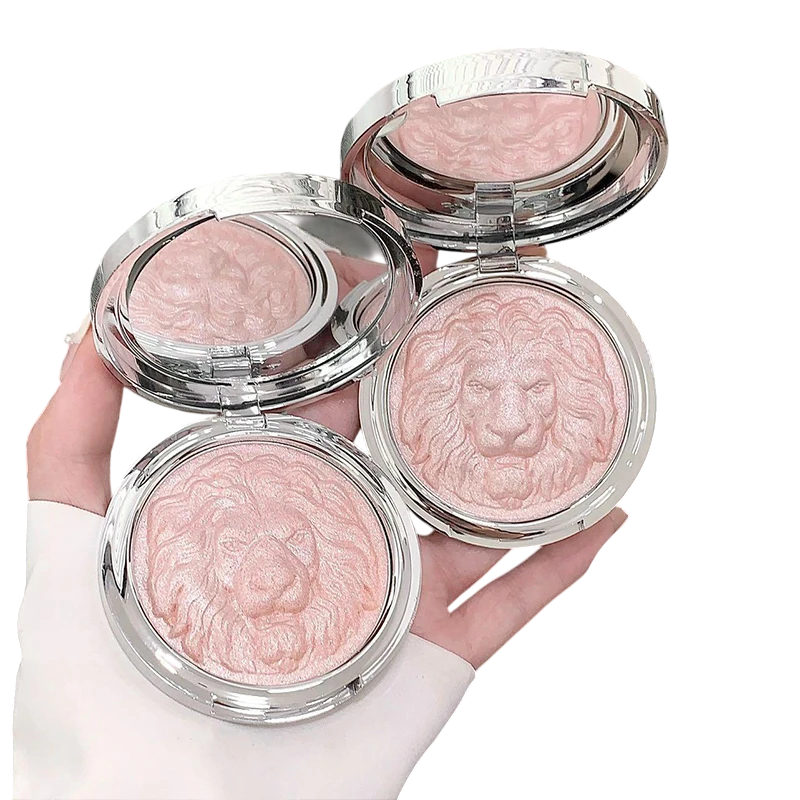 Vattenfast highlighter i palett med lejonmotiv Puderhighlighter för ansiktet Fin glittrande lyster långvarig effekt