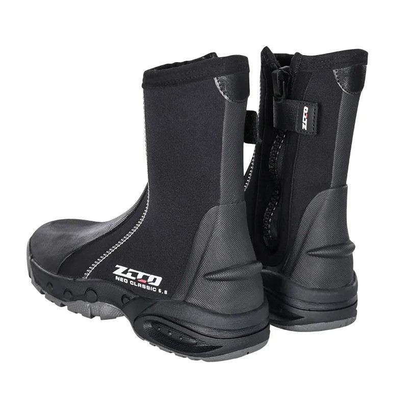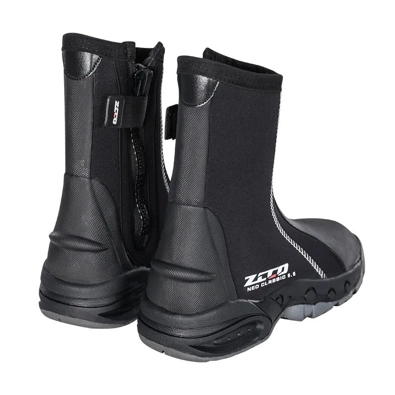 5 mm gummi ger optimalt skydd för fötterna mot vassa föremål, stenar eller koraller, samtidigt som det säkerställer flexibilitet vid rörelse. Den halkfria sulan möjliggör