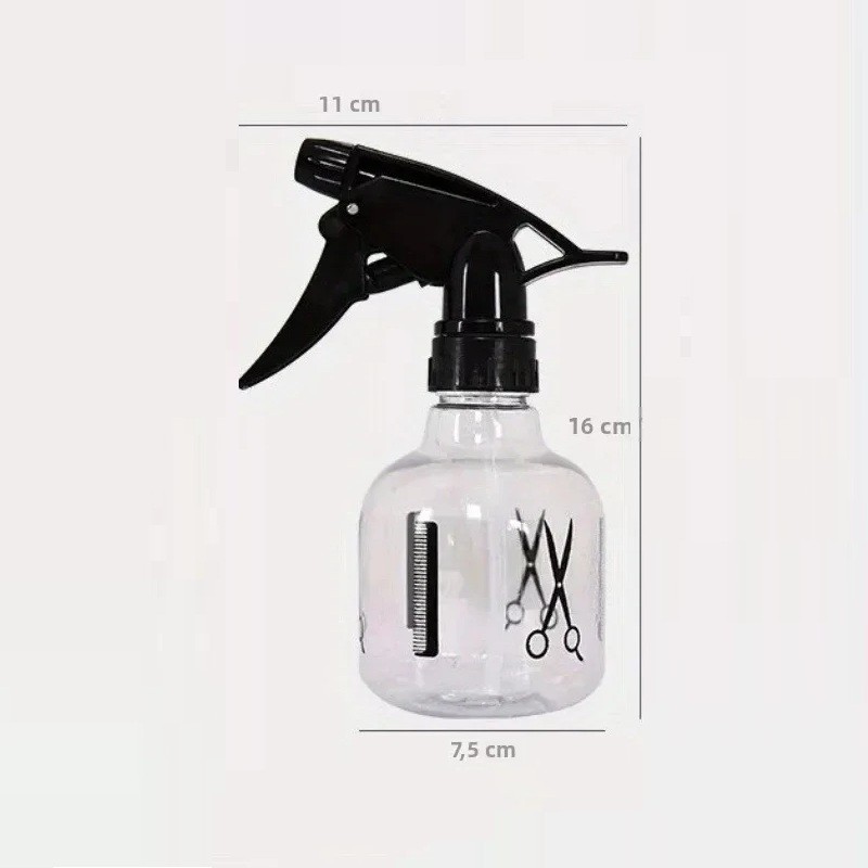 Vattenspray 16 x 7,5 x 11 cm Frisör barber spray Styling av frisyrer Fin dimma Flaska med dekor av saxar och kammar