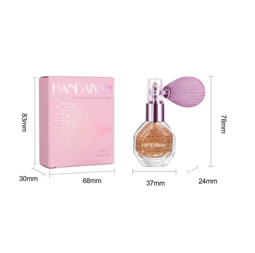 Vattentät glittrande highlighter i spray 78 x 37 x 24 mm Spray för kropp, ansikte och hår Fin glans kosmetisk highlighter spray