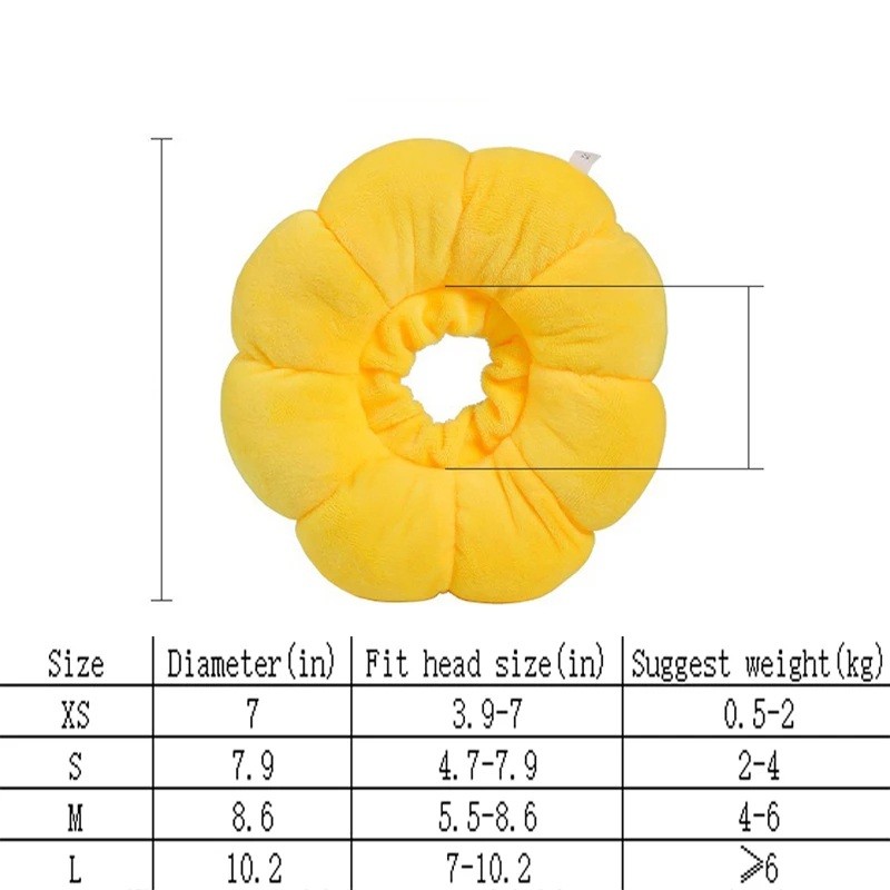 Vattentät skyddskrage för katter i form av en solros Mjuk plyschkrage mot bitande och slickande Läkning av sår Storlek S