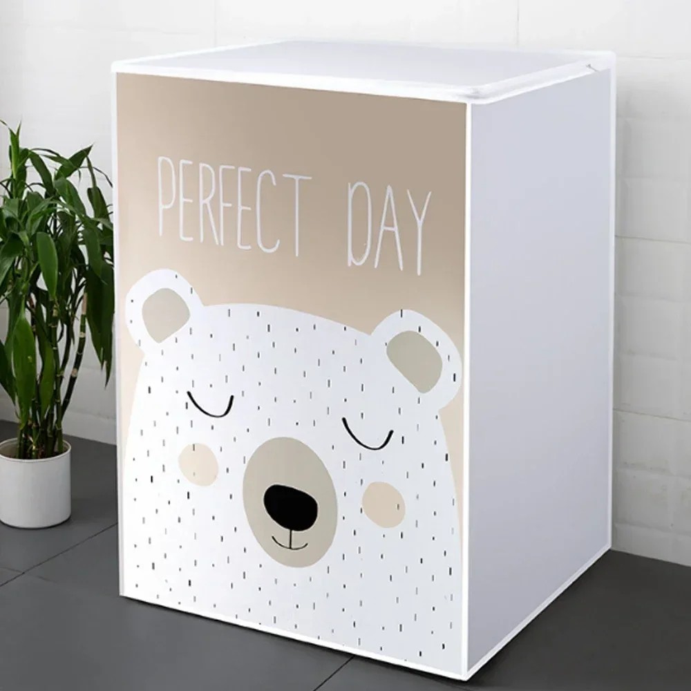 Detta överdrag är utformat för att kombinera funktionalitet, stil och lång livslängd. Det skyddar tvättmaskinen mot skador, damm och fukt, medan det söta björnmotivet ger hela utrymmet en trevlig atmosfär. Den övre dragkedjan säkerställer enkel användning av toppmatad tvättmaskin och gör att överdraget kan förbli på plats. Om du letar efter ett estetiskt och effektivt skydd för tvättmaskinen som är både praktiskt och dekorativt, är denna modell ett perfekt val.