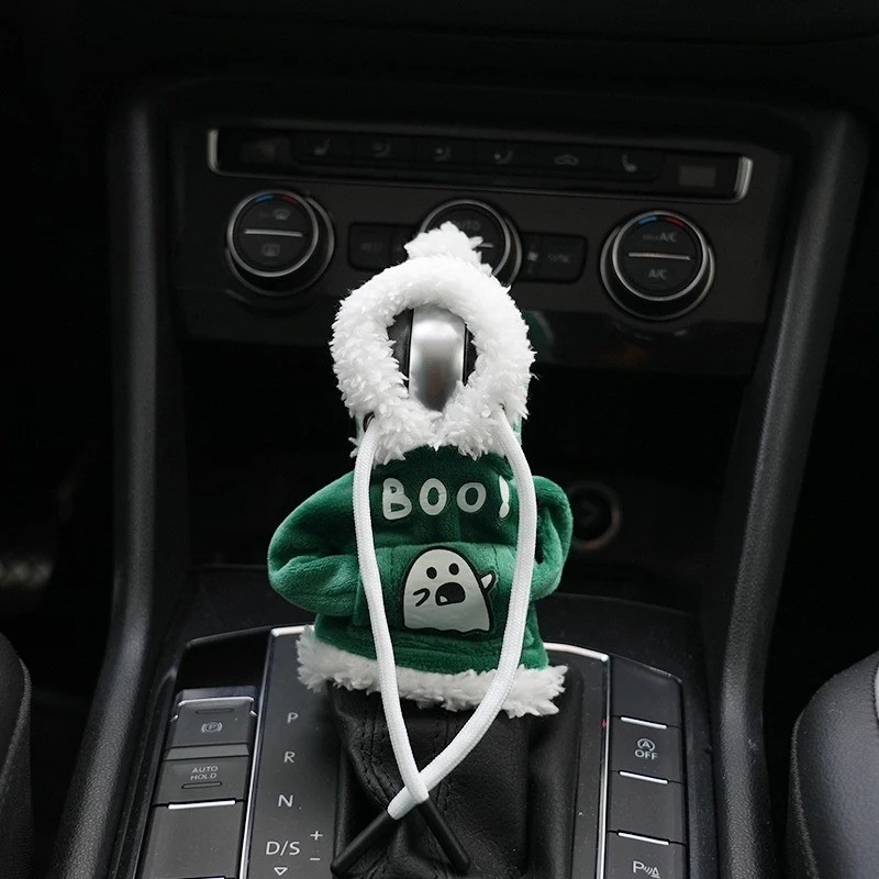 Startsida Startsida Bil och motor Bilinteriörtillbehör Bilinteriördekorationer Växelspakskydd och hoodie med foder, tryck av spöke och texten "Boo!", bomull, polyester
