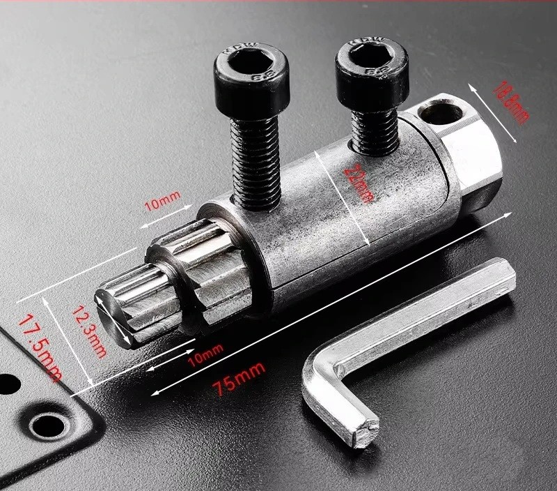 Vid användning, sätt in verktyget i hålet med den brutna skruven så att den inre profilen passar korrekt. Använd insexnyckeln för att successivt dra åt de övre skruvarna, vilket leder till ett fast grepp om resterna av skruven. Vrid sedan hela verktyget och skruva försiktigt ut skruven från ventilen. Arbeta jämnt utan att använda överdriven kraft för att undvika skador på den omgivande gängan. Efter borttagning, lossa verktyget och rengör det.