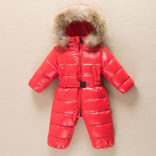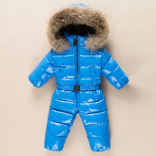 Denna jumpsuite har isolering gjord av vita ankfjädrar, vilket gör den underbart varm.