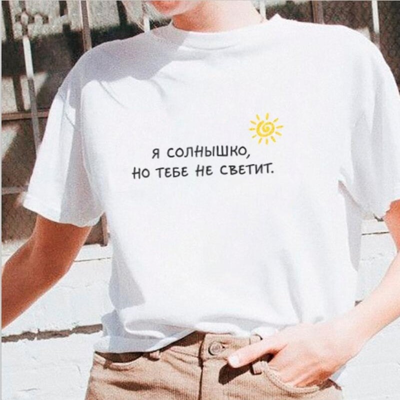 Vit t-shirt för kvinnor med kyrillisk skrift