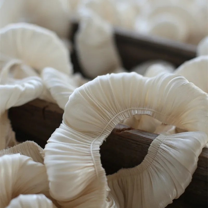 Volangband av dubbelskiktad plisserad är ett dekorativt textiltillbehör som är lämpligt för sömnad, dekoration av kläder och olika kreativa projekt. Tack vare den dubbelskiktade konstruktionen skapar det en framträdande dekorativ effekt som kan framhäva utseendet på kläder, tillbehör eller inredningsdekorationer. Det plisserade volangbandet ger bandet volym och en mjuk textil detalj.
