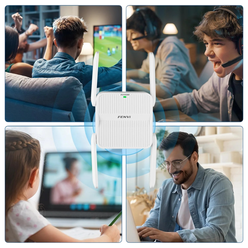 WiFi-extender används för att utöka det trådlösa signalet från huvudroutern till områden där täckningen är svag eller instabil. Den hjälper till att öka räckvidden för det trådlösa WiFi-nätverket i andra rum och minska förekomsten av så kallade döda zoner. Enheten är avsedd för användning i hem, kontor eller mindre arbetsutrymmen.